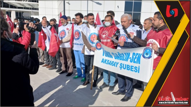 Türk Sağlık-Sen Aksaray Şubesi üyeleri, iş bırakarak, ASÜ Eğitim ve Araştırma Hastanesi önünde eylem yaptı. Sendika Şube Başkanı Tamer Kara; “Bizim talebimiz ve tüm sağlık çalışanlarının beklentisi; sürdürülebilir ve kalıcı ücret politikasının benimsenmesidir” dedi.