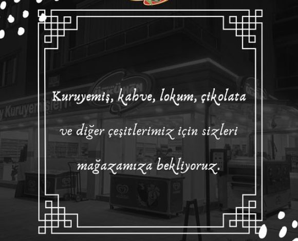Kuruyemiş, kahve, lokum, çikolata ve diğer çeşitlerimiz için sizleri mağazamıza bekliyoruz.