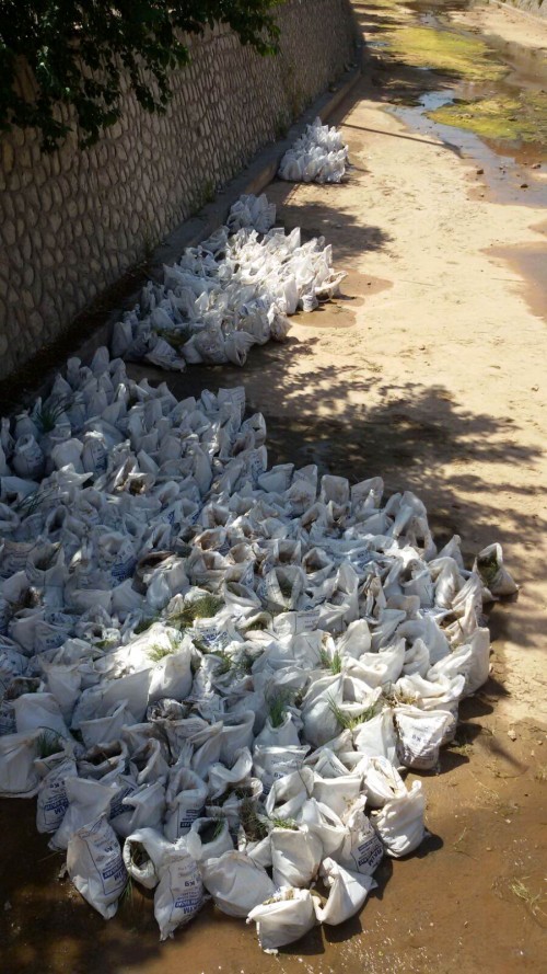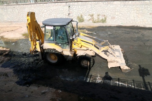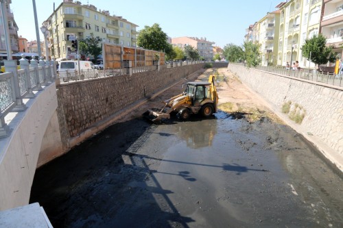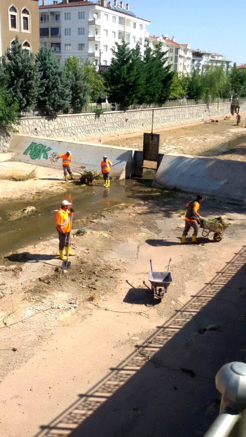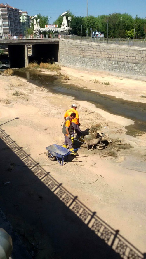 Temizlik ekipleri, ırmağın zemininde oluşan katı atıkların yanı sıra ırmağa atılan çöp, kâğıt, poşet gibi maddeleri temizlemeye başladılar.